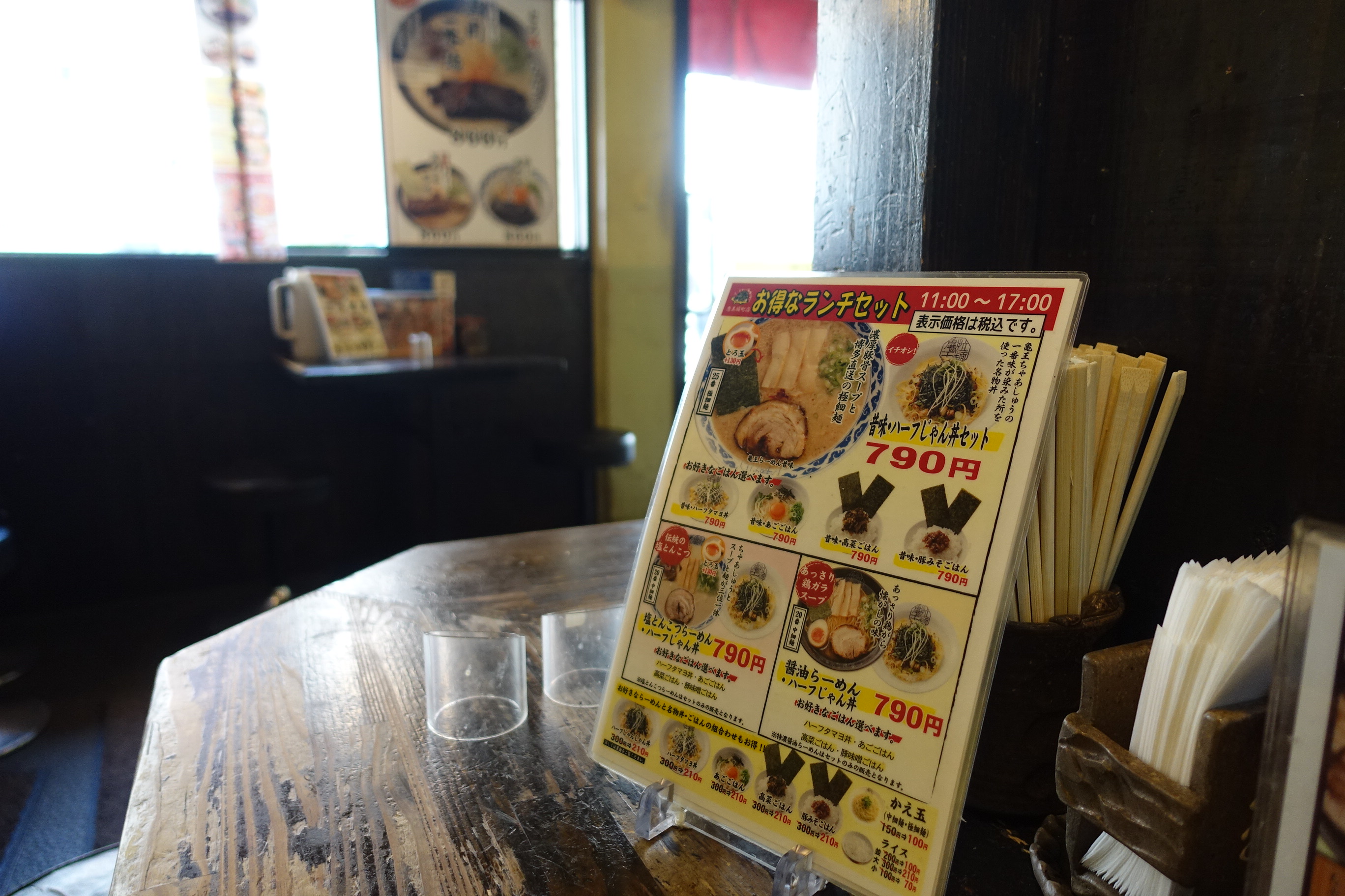 점심시간에는 라멘과 함께 작은 덮밥이나 사이드 메뉴 등을 런치세트로 저렴하게 먹을수가 있습니다.